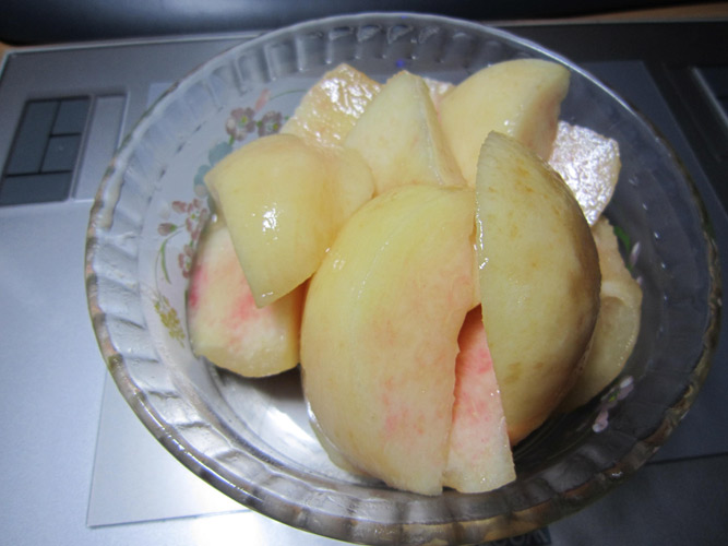 桃2個分!甘いところを後から食べるために切ります。