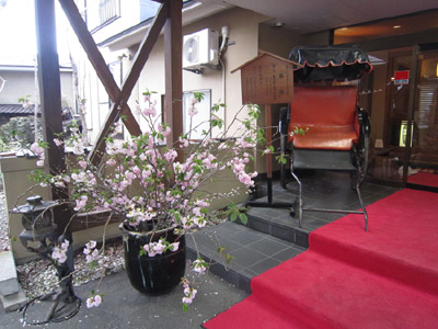 玄関先のディスプレイが好きだった。八重桜に人力車。