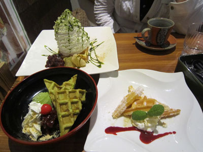 左:和風抹茶わっふるセットとちょこっとワッフル(ちょこっとはランチにプラスで付けれるの)