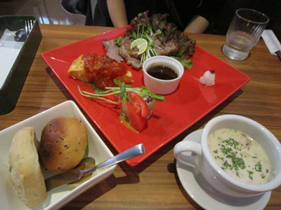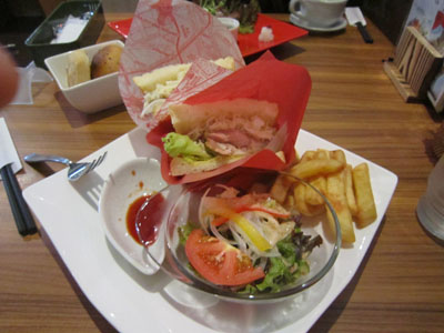 左がミートパイ。右があぶり若鶏のサンド。どっちもランチセットで。