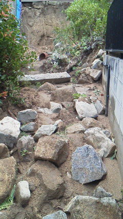 しかし私の実家から上に上がる1本道が土砂でふさがってたので
